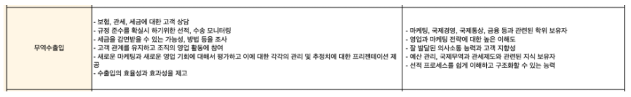 필요 역량으로는 물류학, 무역학, 산업공학 전공을 하신 분들이 유리할 수 있고