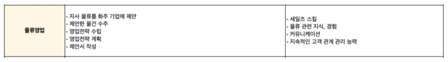 : 자사 물류 서비스를 화주 기업에 제안하고 수주를 받아오는 직무